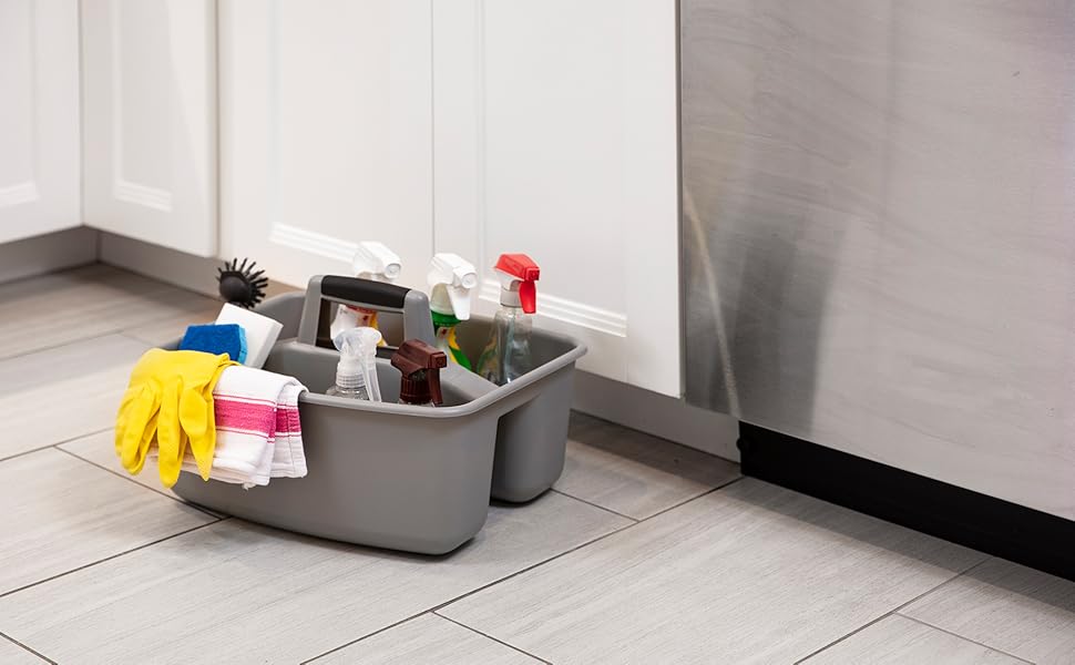 This multi-compartment cleaning caddy makes it easy to carry everything in one trip.