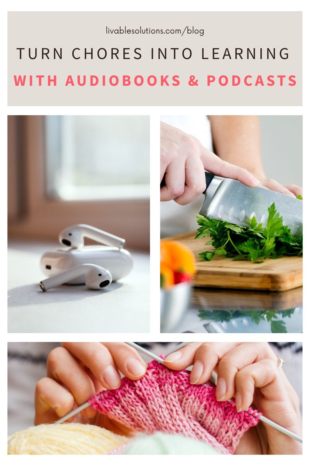 As a professional organizer, I’m always looking for simple ways to maximize time, especially during routine tasks. Whether I’m simmering a soup on the stove or working on my latest knitting project, I’ve found an amazing way to stay productive, entertained, and informed: listening to audiobooks and podcasts.  That’s why I want to help you learn to multitask with audiobooks and podcasts.